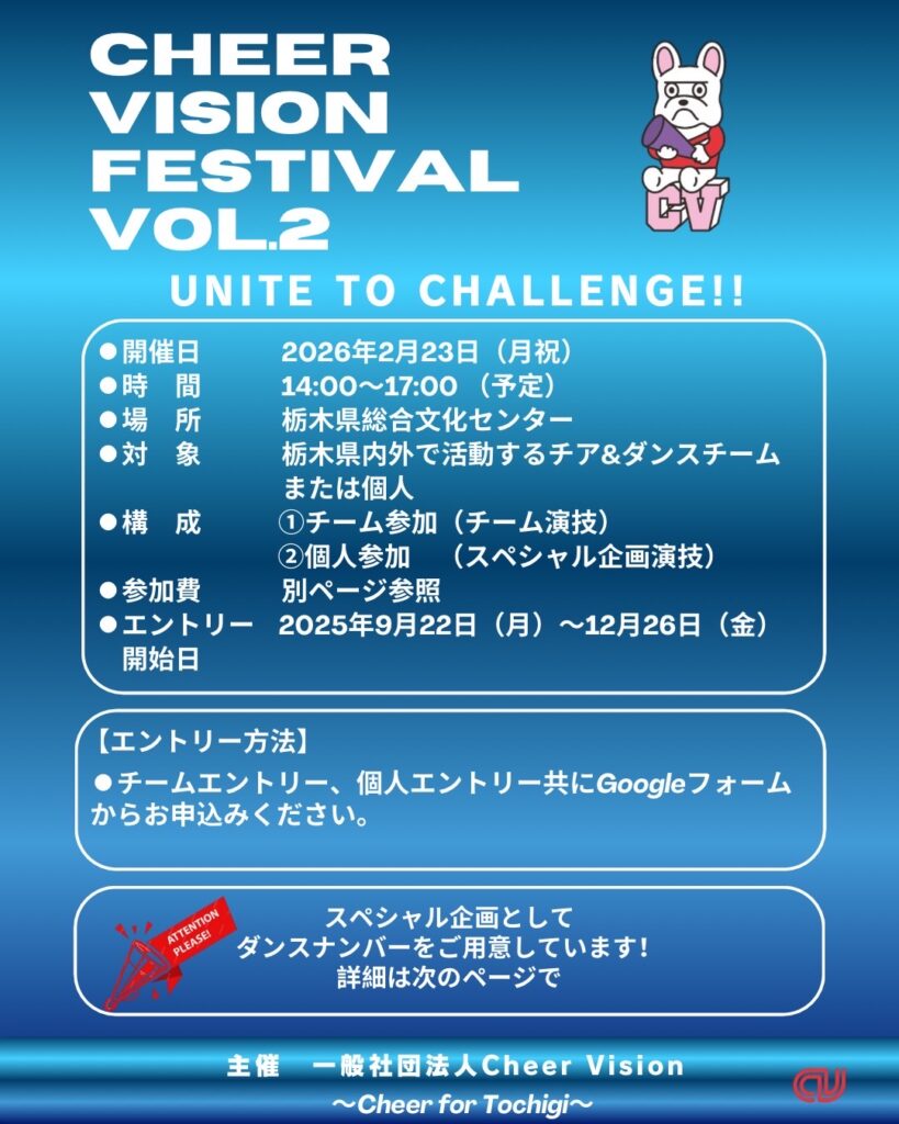 CHEER VISION FESTIVAL vol.2エントリー開始します!